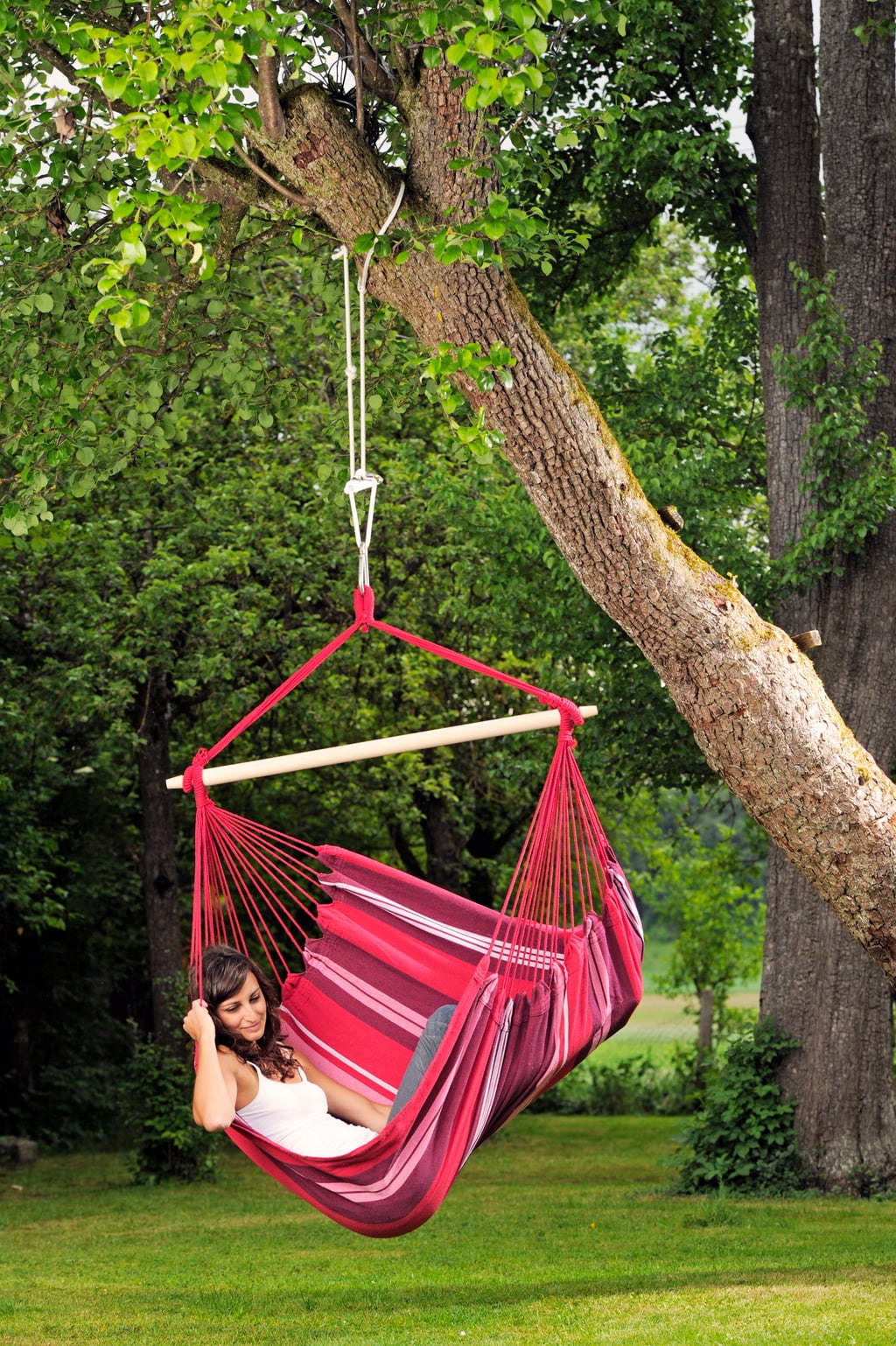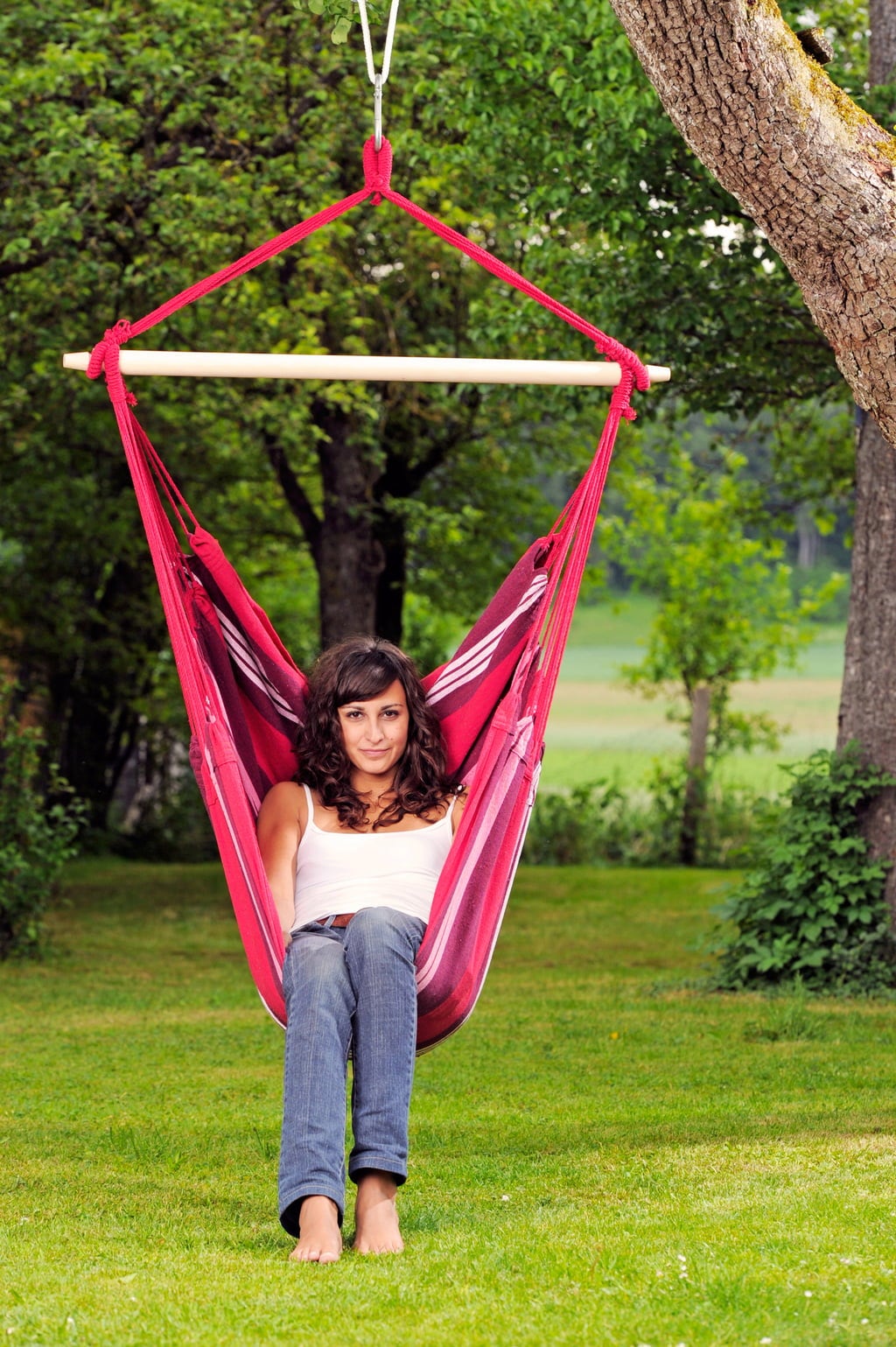 Immergiti nel puro relax con la sedia sospesa Havanna di Amazonas! Questa spaziosa e comoda sedia sospesa invita a sognare e riposarsi.