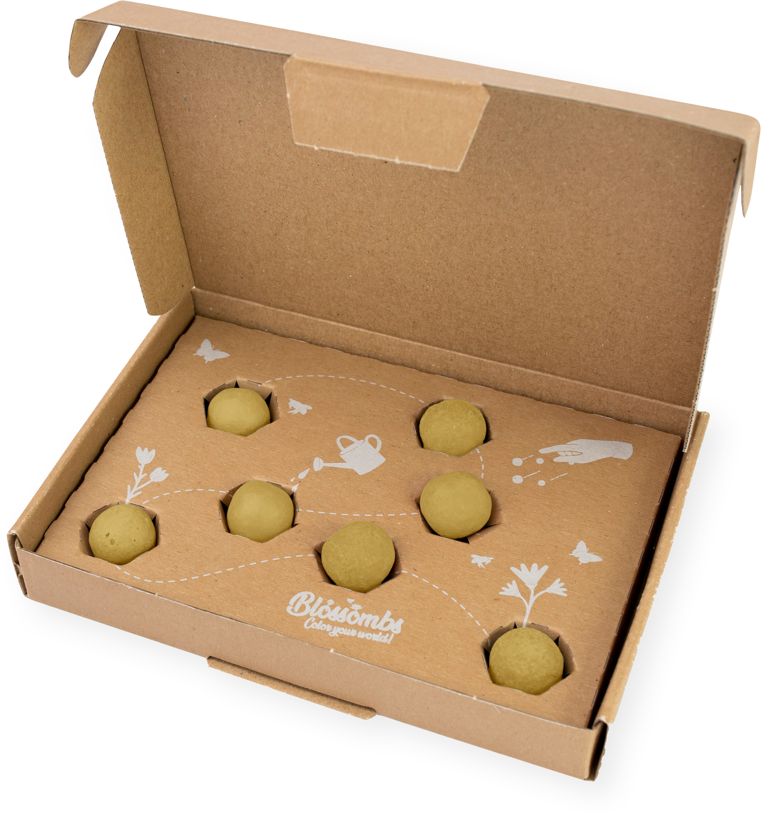 Questa confezione regalo, curata nei minimi dettagli, è ideale per chiunque ami cucinare o apprezzi la natura. Le bombe di semi faranno crescere erbe aromatiche da utilizzare in cucina o semplicemente lasciare fiorire. In questo modo, non solo avrai ingredienti freschi, ma anche preziosi fiori per api e farfalle. Un regalo sostenibile che unisce piacere e natura.