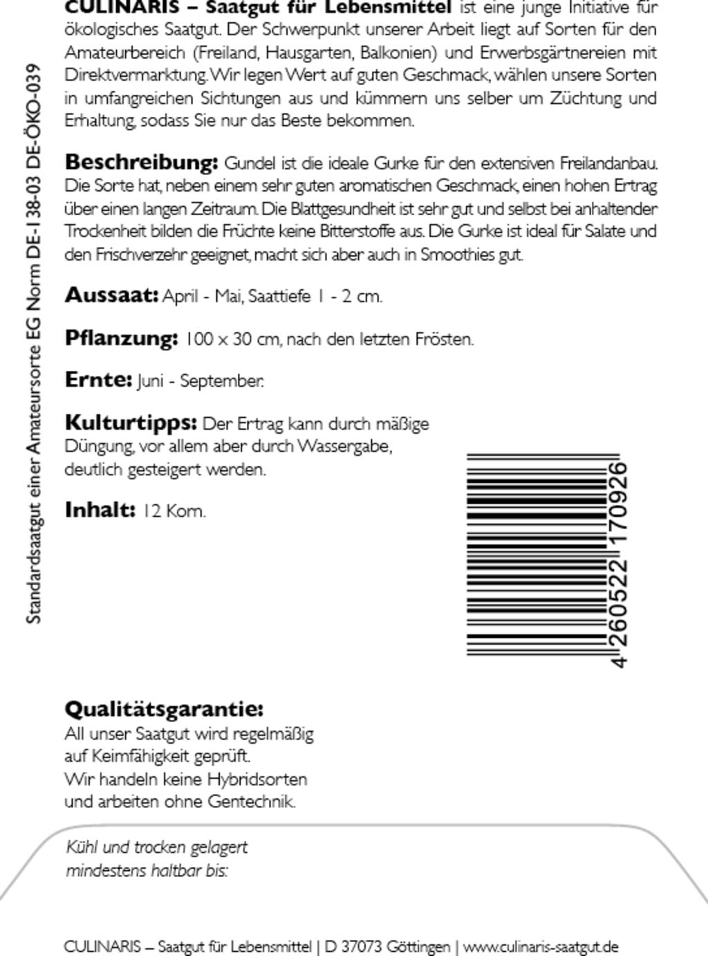Culinaris Cetriolo Bio - Gundel, 12 semi