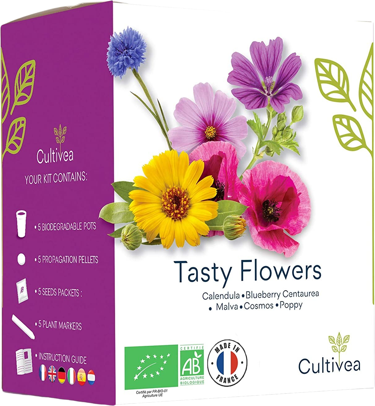 Scopri il Mini Kit Tasty Flowers di Cultivea e aggiungi colore, sapore e gioia alla tua cucina. Anche senza giardino puoi coltivare i tuoi fiori direttamente in casa: ideali per decorare piatti, insalate e dessert. Con questo kit partecipi attivamente alla coltivazione dei tuoi alimenti e potrai utilizzare con orgoglio i tuoi fiori freschi appena raccolti.