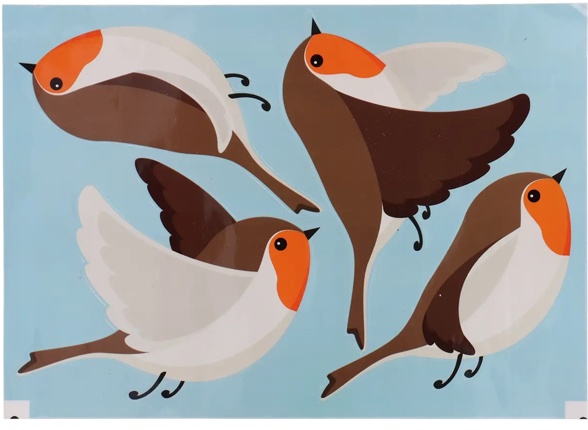 Gli adesivi decorativi per finestre aiutano a prevenire l'urto degli uccelli contro le superfici vetrate, unendo funzionalità e valore estetico. Applicando i quattro pettirossi all'esterno della finestra contribuisci a ridurre efficacemente le collisioni.
