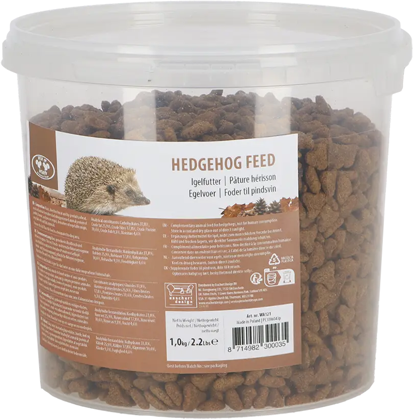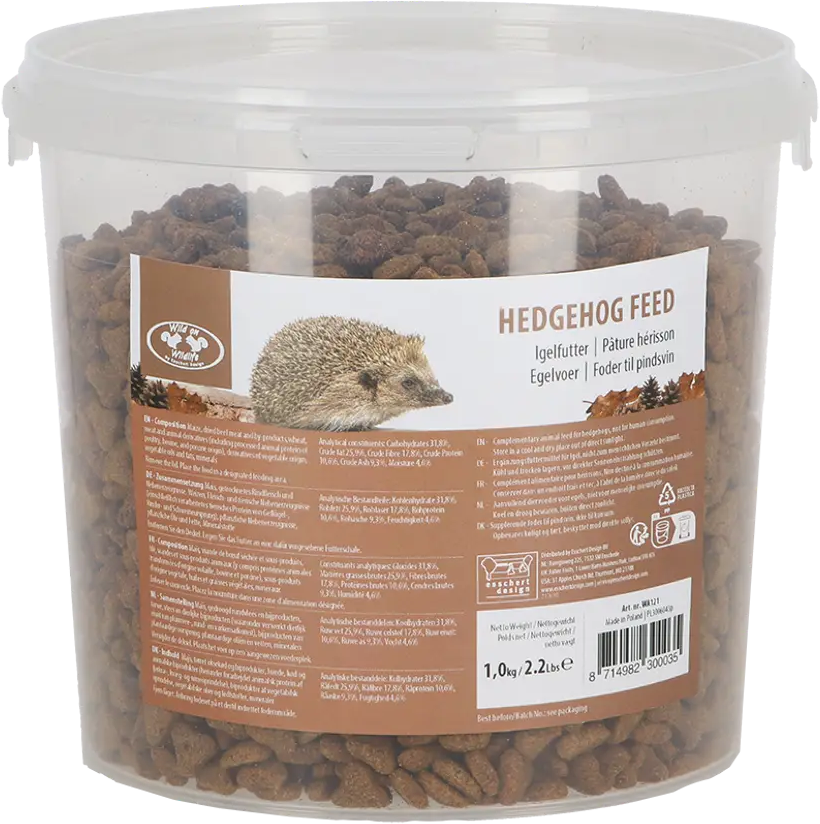 Questo cibo per ricci di alta qualità offre ai piccoli abitanti spinosi del giardino una miscela bilanciata di ingredienti selezionati, come mais, carne bovina, frumento, oli e grassi. In questo modo puoi supportare i ricci tutto l'anno e mettere a disposizione una fonte di nutrimento adatta alle loro esigenze.