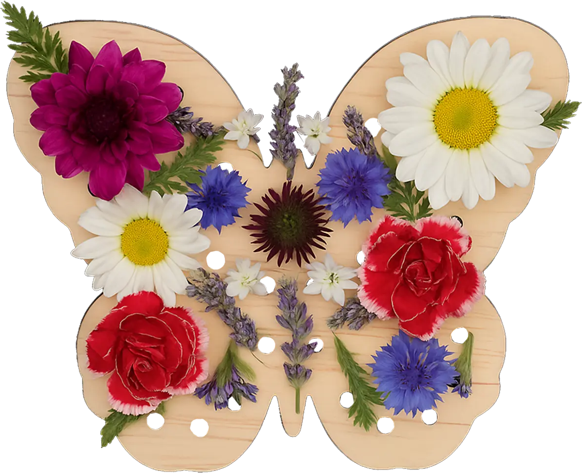 Il portafiori in legno a forma di farfalla permette di creare composizioni floreali vivaci e originali. I fiori inseriti nei fori trasformano l'oggetto in una decorazione naturale e colorata.