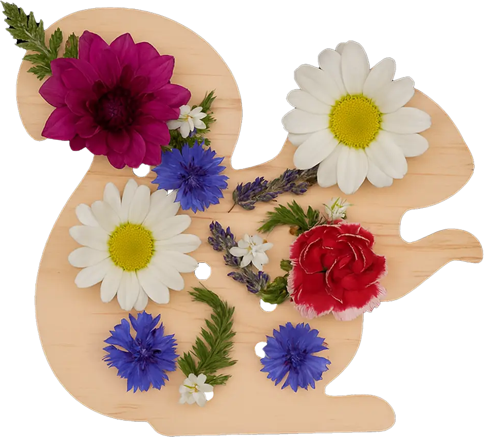 Il portafiori in legno a forma di scoiattolo permette di creare composizioni floreali sempre nuove e colorate. Basta inserire i fiori raccolti nei fori per ottenere una decorazione naturale dal grande effetto visivo.
