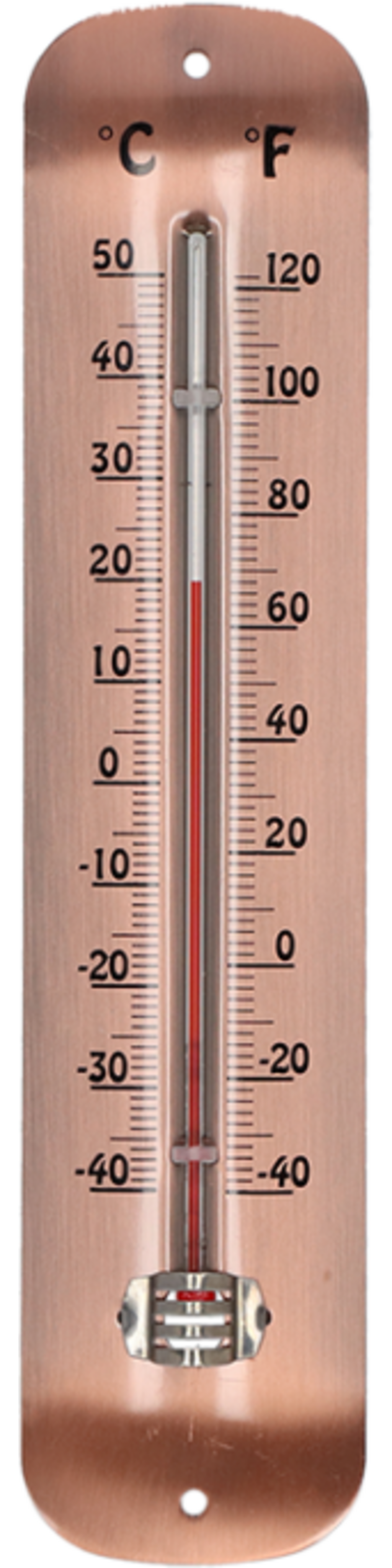 Questo termometro in rame unisce un design elegante a una funzione precisa. Ideale per giardino, terrazza o balcone, indica la temperatura in modo affidabile e grazie alla finitura metallica diventa un elemento decorativo di spicco. La lavorazione robusta lo rende resistente a vento e intemperie.