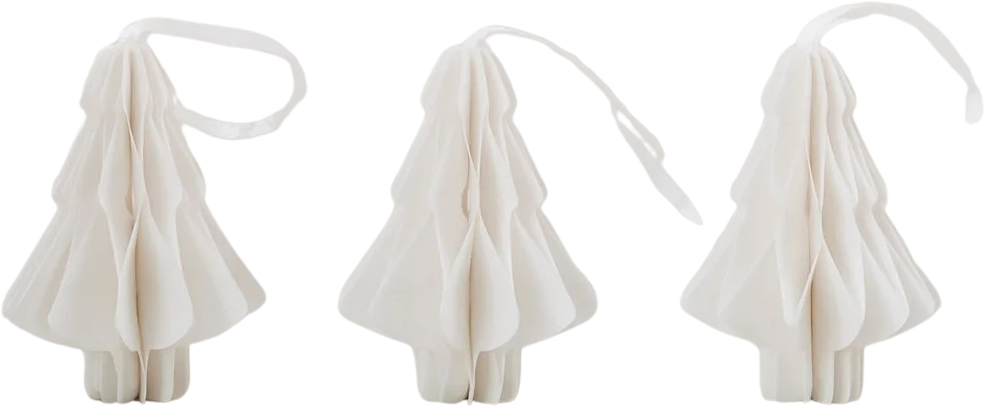 Porta un tocco naturale e festoso in casa con il set da 3 decorazioni in carta a forma di abete. Le delicate sagome con effetto a nido d’ape decorano con eleganza albero di Natale, rami, pacchetti regalo o finestre.