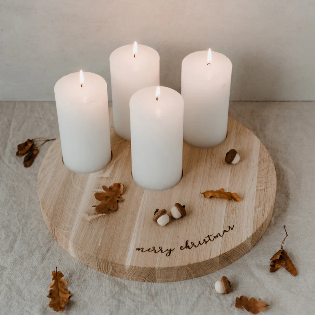 Questo portacandele in legno di quercia di alta qualità, elaborato con grande attenzione ai dettagli, offre spazio per quattro candele e ti invita a decorarlo individualmente. Usato come attrazione sulla credenza o come variante puristica della corona dell'Avvento, è sicuramente un accessorio molto speciale per il periodo più bello dell'anno.