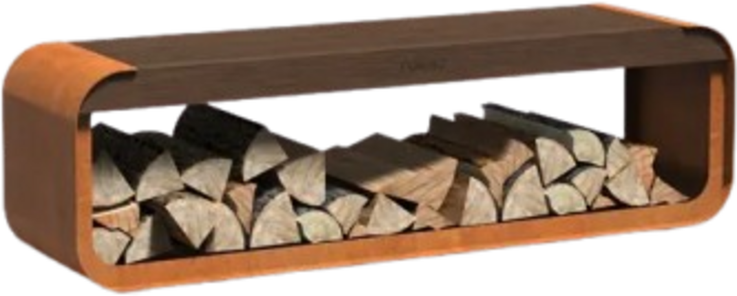FORNO Portalegna "Serra" con Seduta in Acciaio Corten, 1500x400x450 mm
