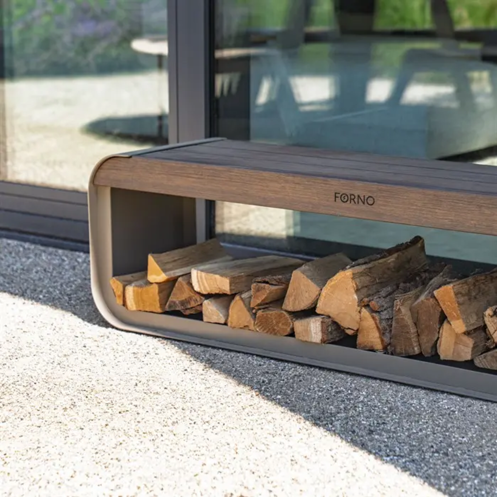 FORNO Portalegna "Serra" con Seduta in Alluminio, 1500x400x450 mm