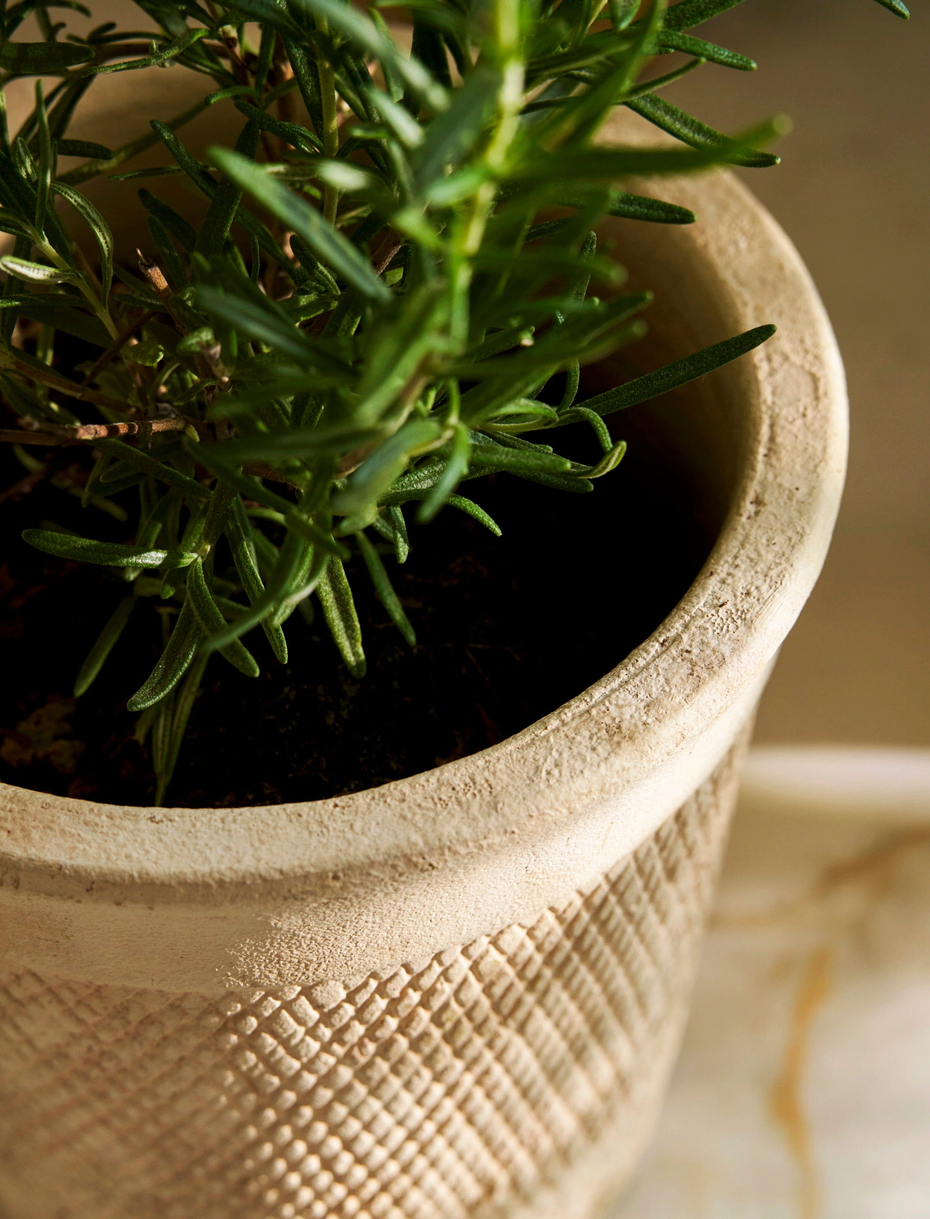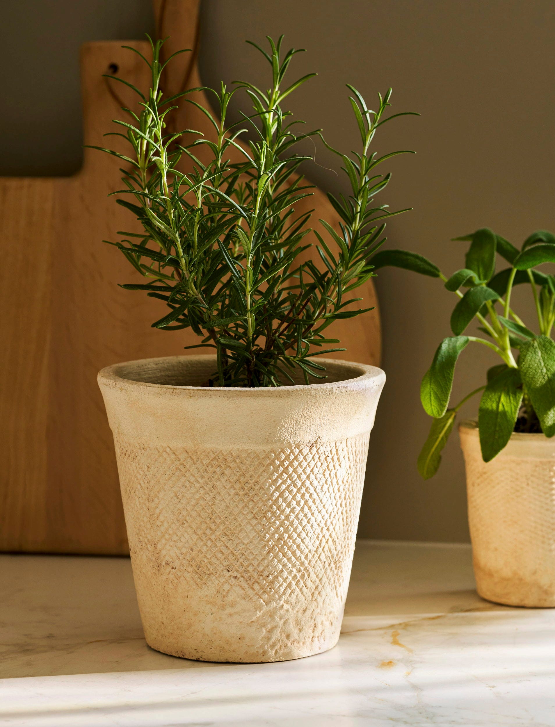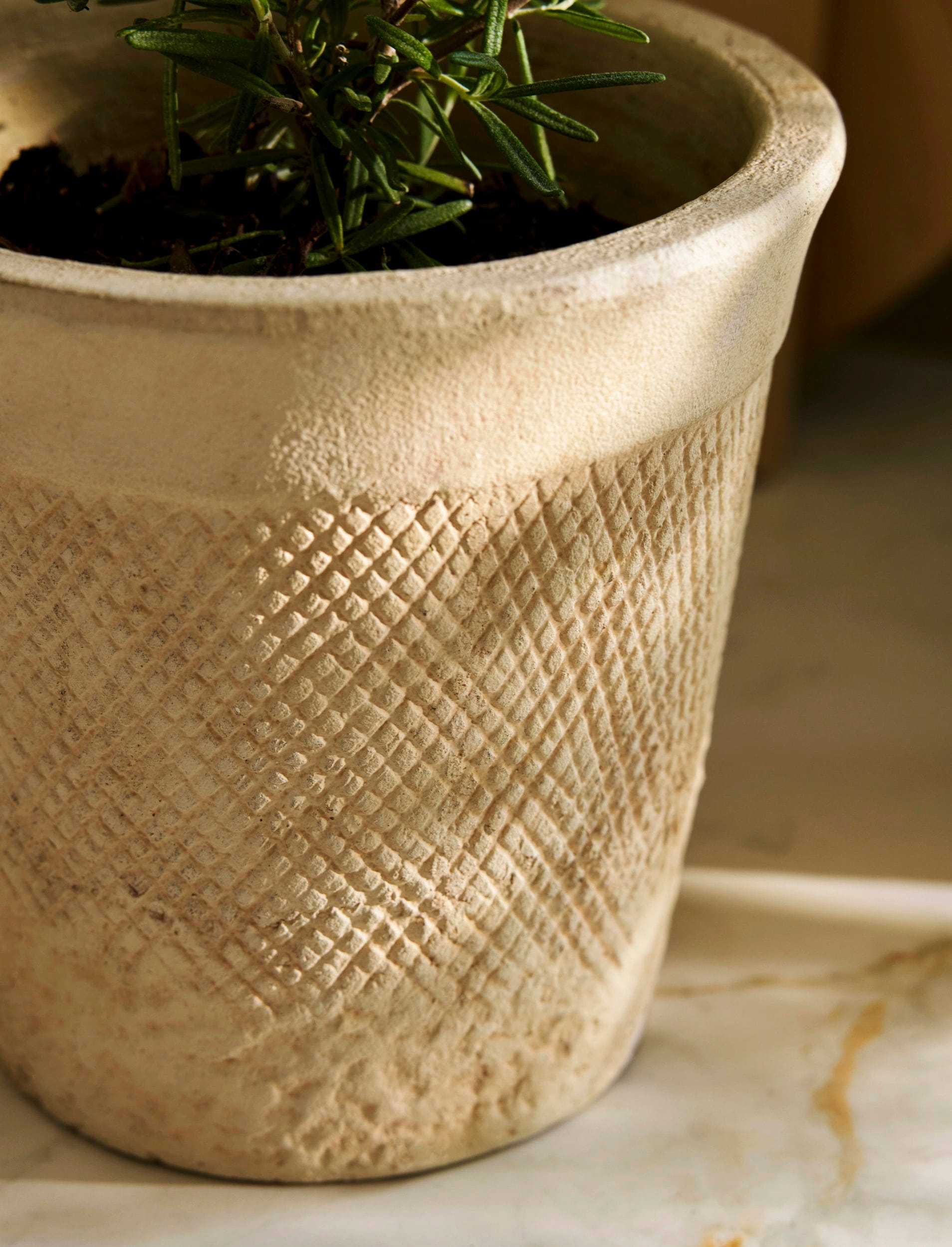 La superficie in pietra finemente strutturata dona a questo vaso un aspetto elegante, mentre l'interno impermeabile assicura condizioni ottimali per la crescita delle piante. Ideale per piccole erbe aromatiche, succulente o composizioni in miniatura, questo vaso trasforma il verde quotidiano in un raffinato elemento di design.