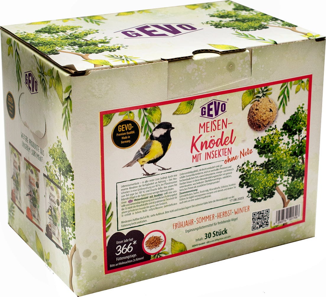 Queste palline nutrienti di alta qualità sono adatte durante tutto l’anno e rappresentano un’integrazione utile alla dieta naturale degli uccelli selvatici non solo in inverno. Forniscono preziosi nutrienti e possono così supportare il normale successo riproduttivo. Gli insetti essiccati contenuti offrono un’ulteriore fonte di energia con proteine animali extra.