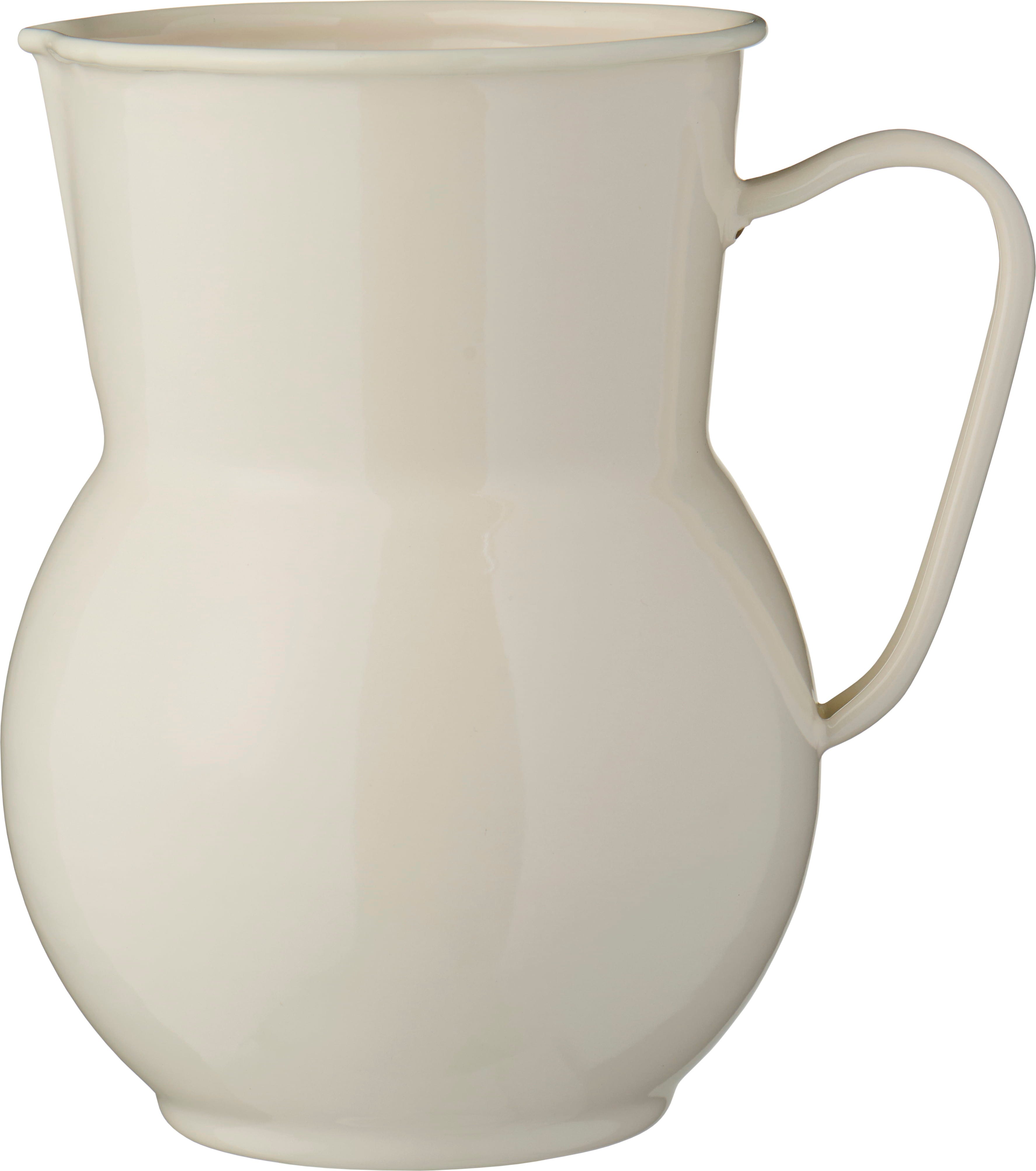 Brocca in smalto di alta qualità dal sobrio design vintage, perfetta per servire bevande fresche o per valorizzare mazzi di fiori appena raccolti. Un accessorio versatile che unisce estetica e funzionalità, ideale per una casa curata nei dettagli.