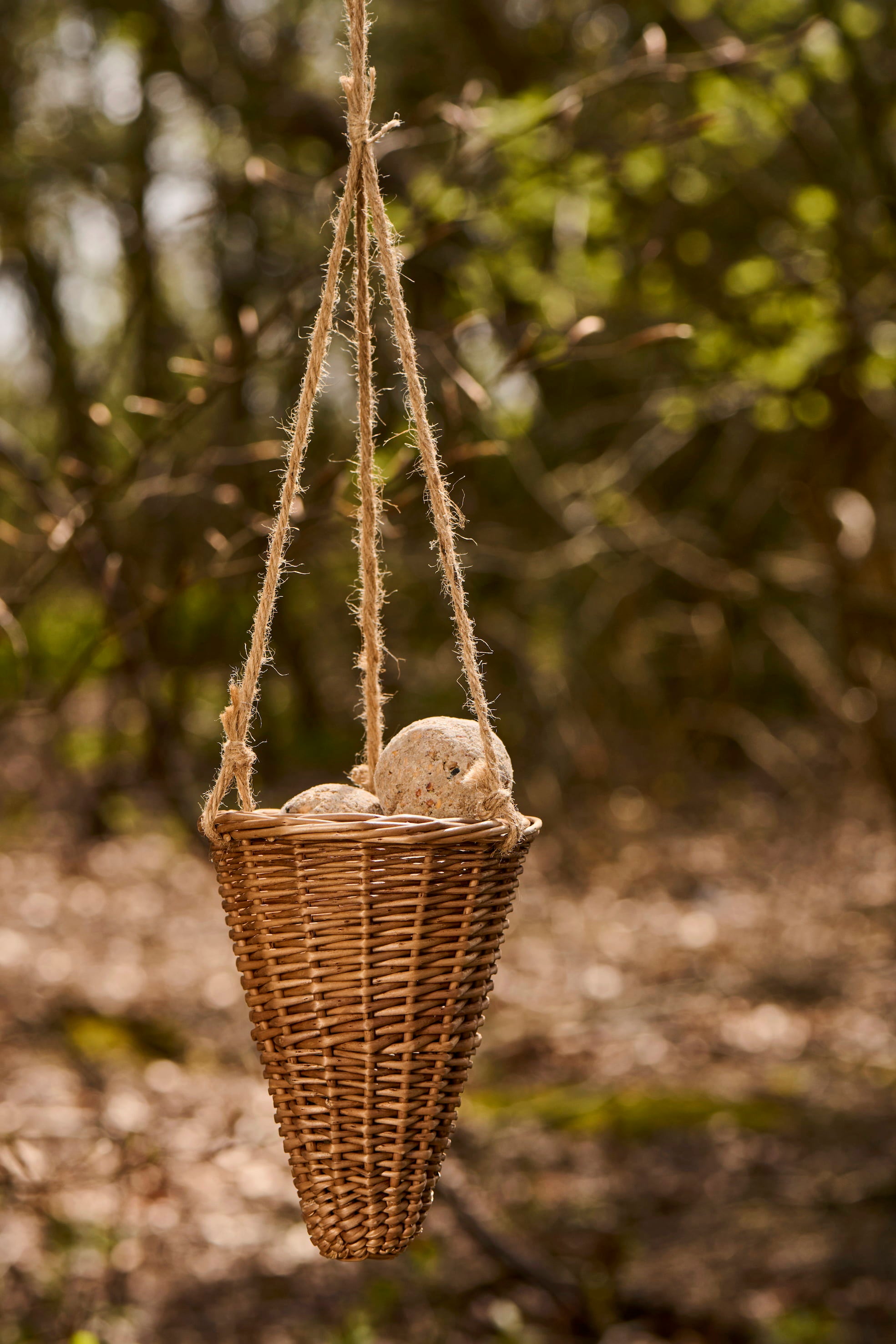 Questo cestino da appendere dalla forma conica non è solo una bella decorazione per il tuo giardino, ma funge anche da mangiatoia per numerose varietà di uccelli.