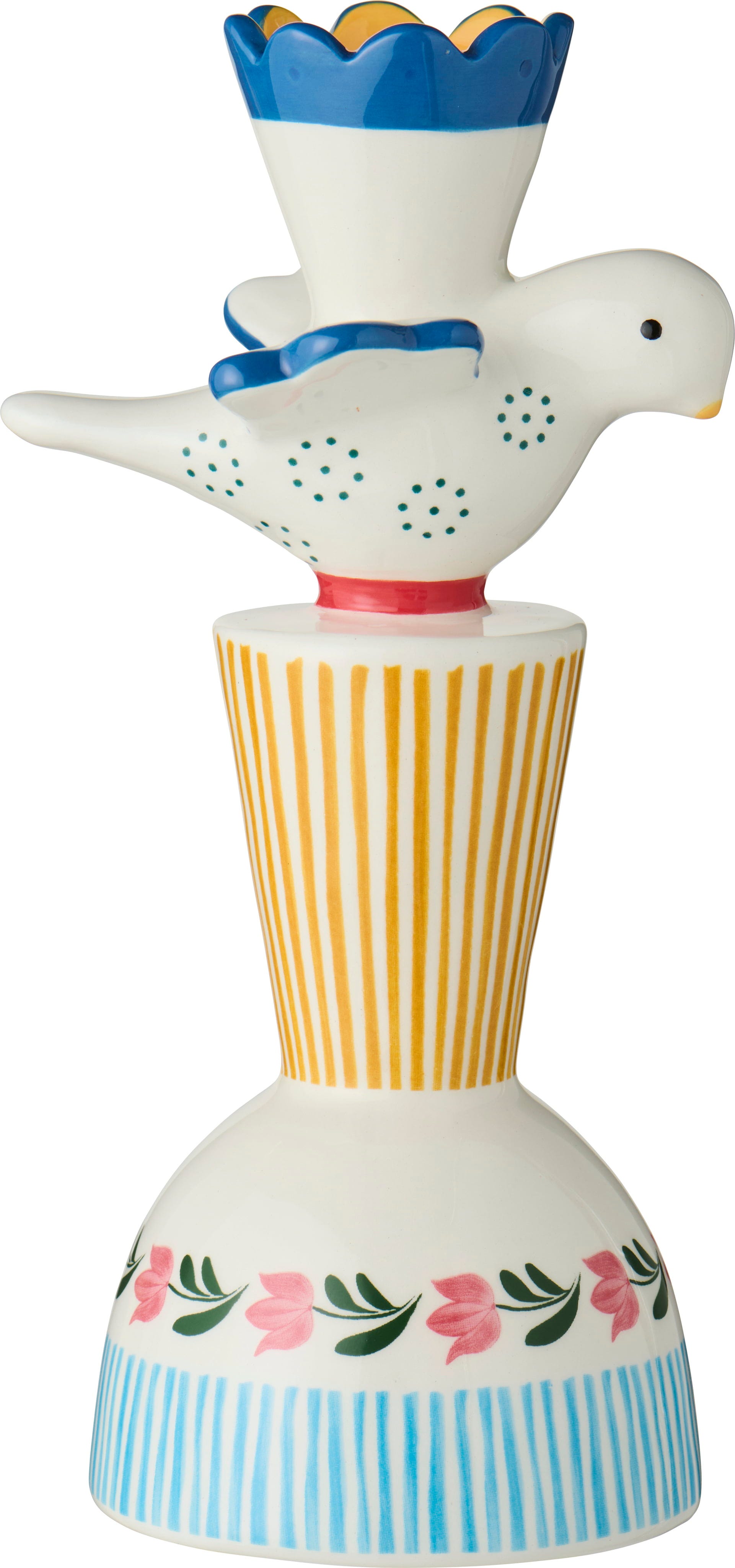Portacandela colorato dal design giocoso e ricco di fascino, capace di catturare lo sguardo su credenze e tavoli con la sua presenza scenografica.