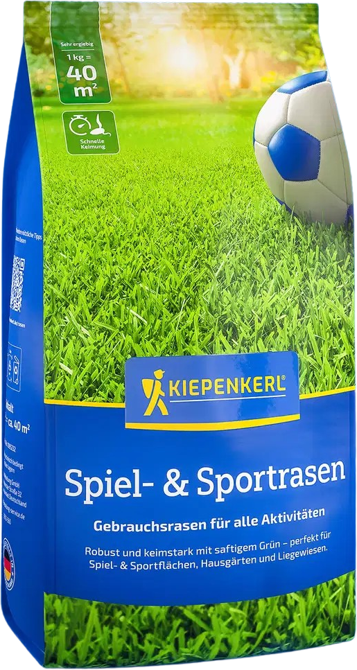 Il prato da gioco e sport Kiepenkerl crea una superficie erbosa resistente e uniformemente verde per aree del giardino soggette a uso intenso. Si rigenera in modo affidabile dopo il calpestio, è adatto ai robot tagliaerba e richiede poca manutenzione. Ideale per giardini di casa, aree relax, spazi gioco e sportivi.
