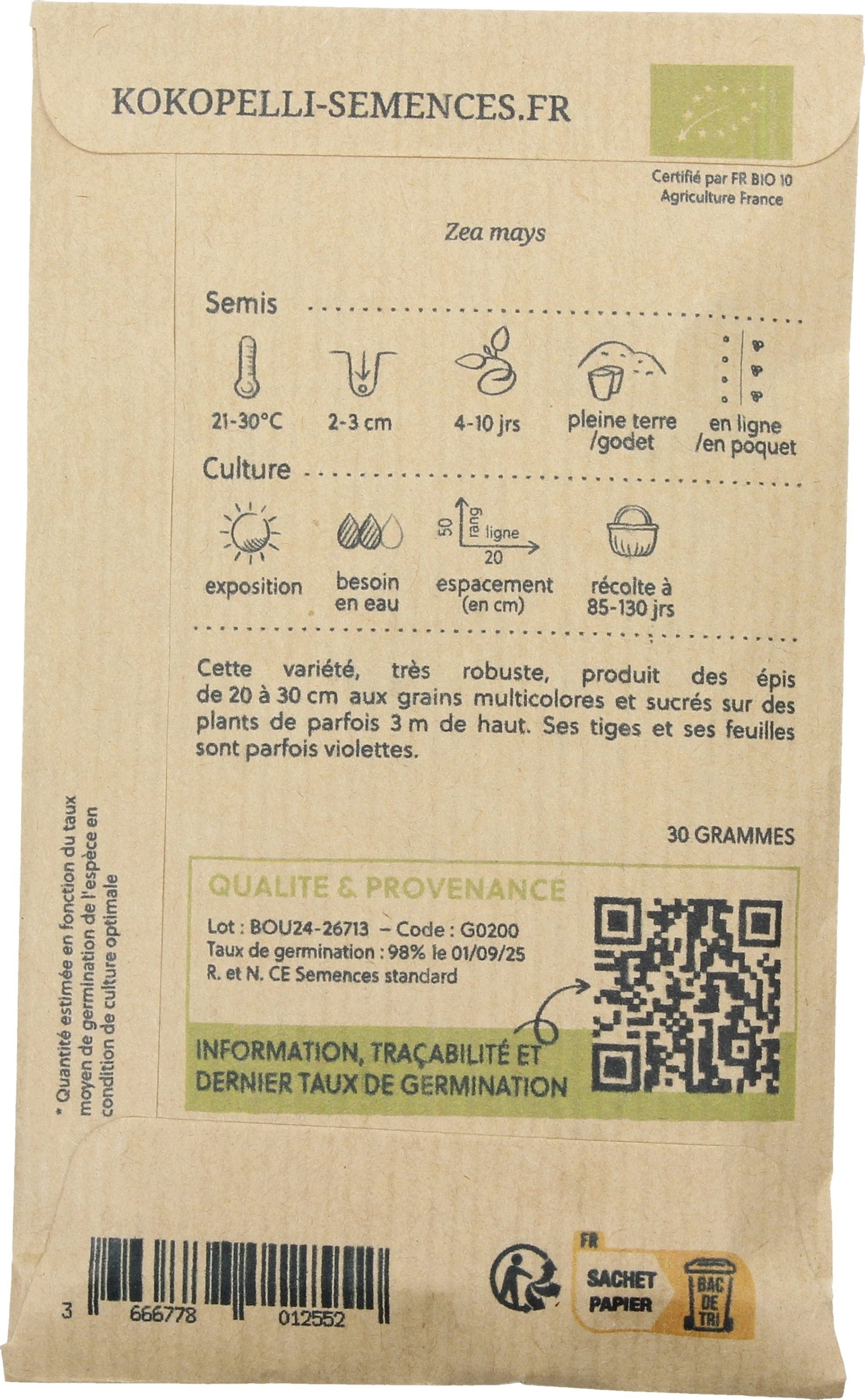 “Inca Rainbow” è un mais dolce dai chicchi multicolori particolarmente decorativi, che può raggiungere fino a 3 m di altezza. Ricco di vitamine, minerali e oligoelementi, offre un raccolto sano e nutriente ed è allo stesso tempo un vero elemento d'attrazione nell'orto.