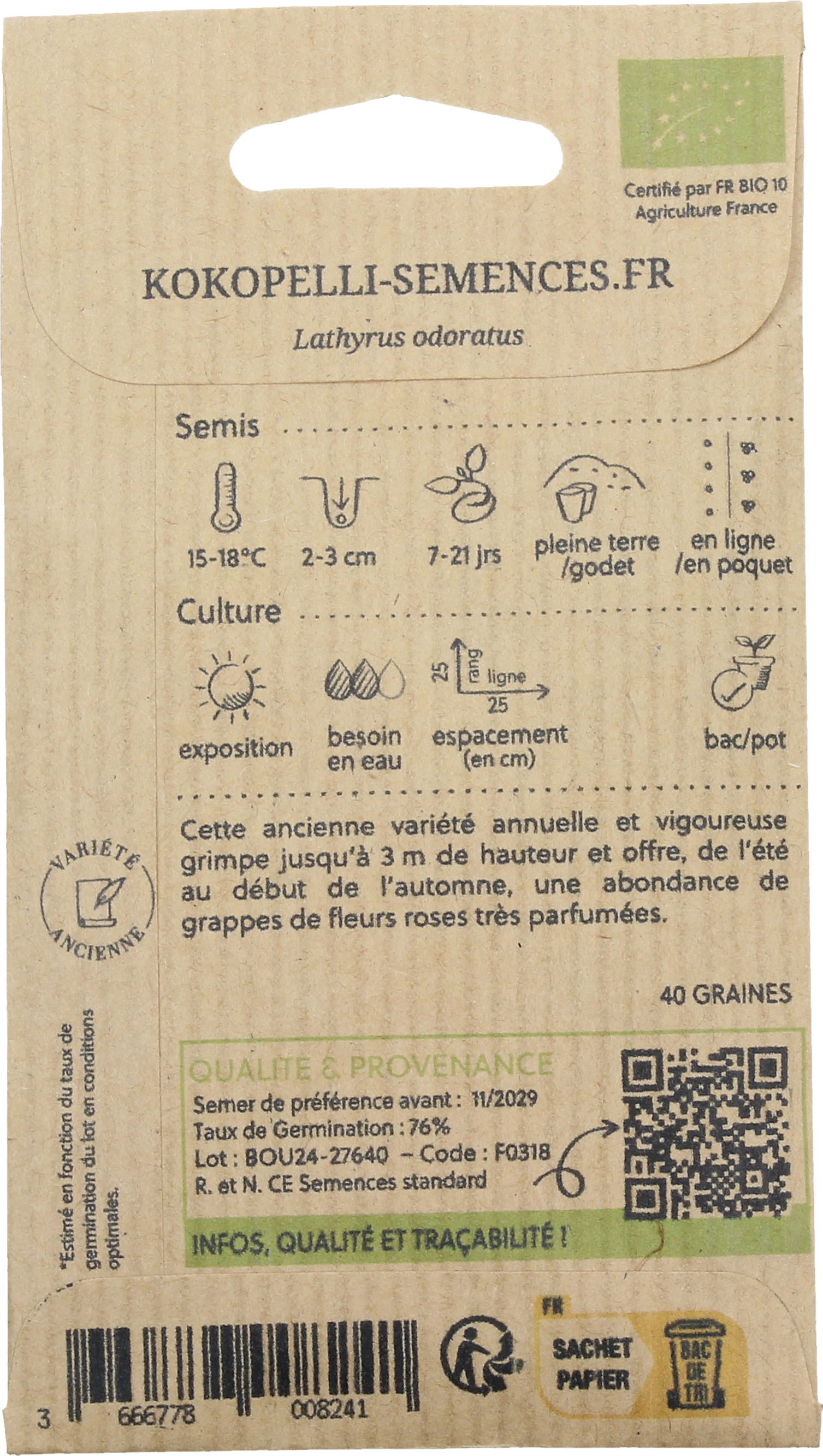 | Produttore: | Association Kokopelli, 7 Route de Sabarat, Foret de Castagnes, 09290, Le Mas D'Azil, Francia, professionnels@kokopelli-semences.fr, www.kokopelli-semences.fr |