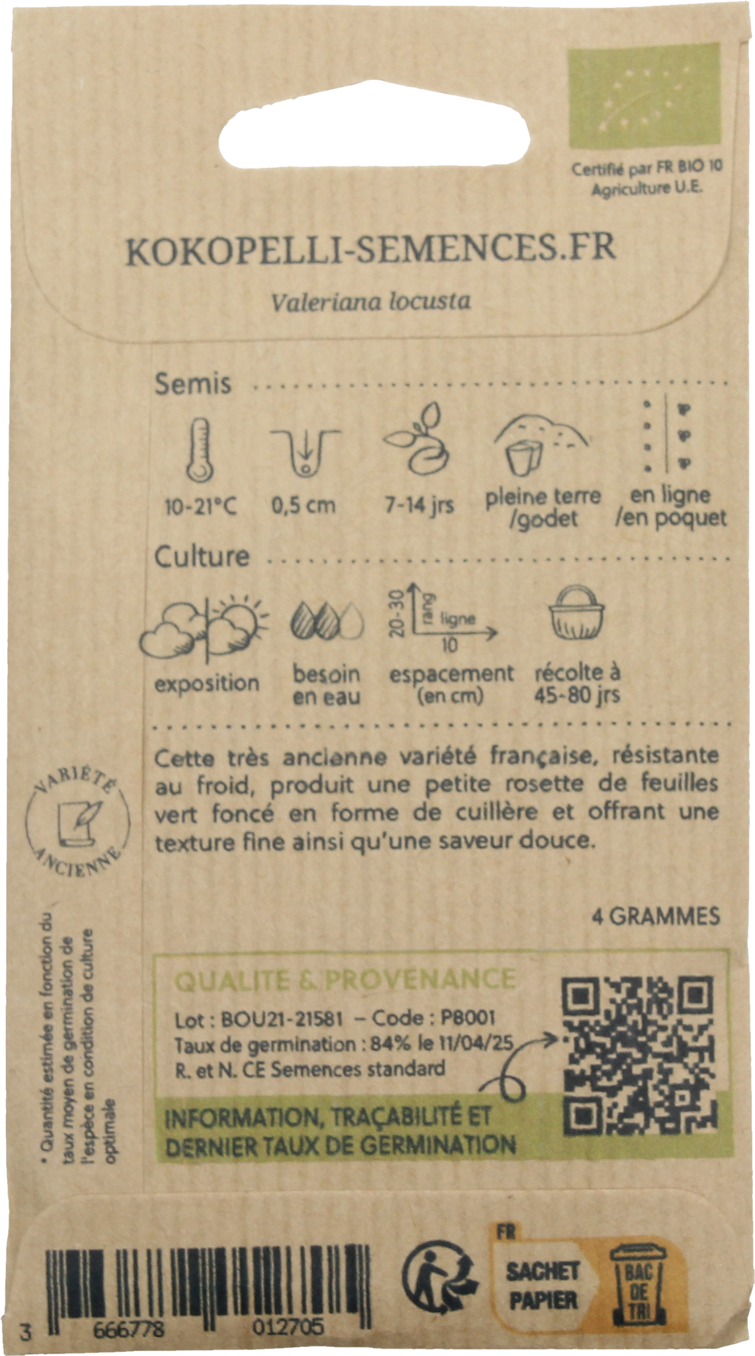 Kokopelli Valerianella Bio - Coquille De Louviers, 4 g