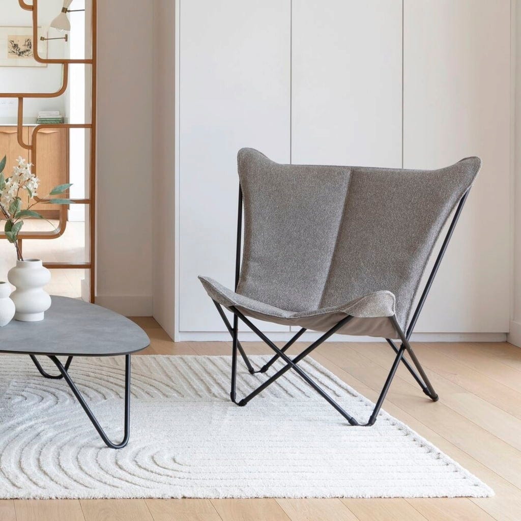Con la Poltrona Lounge SPHINX Niksen di Lafuma porti nel tuo soggiorno una vera icona di design. La seduta extra ampia abbinata allo schienale alto ti avvolge delicatamente, invitandoti ad abbandonarti al piacere del relax e a goderti appieno il momento presente. Il raffinato tessuto bouclé rappresenta il dettaglio estetico distintivo: morbido, caldo e materico, crea immediatamente un'atmosfera accogliente.