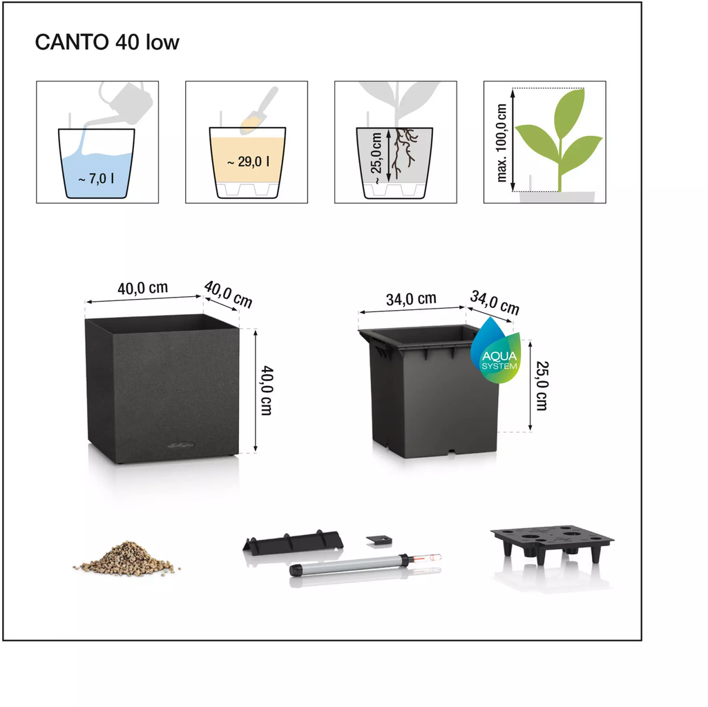 | Dimensioni della fioriera | L 40 x P 40 x H 40 cm |