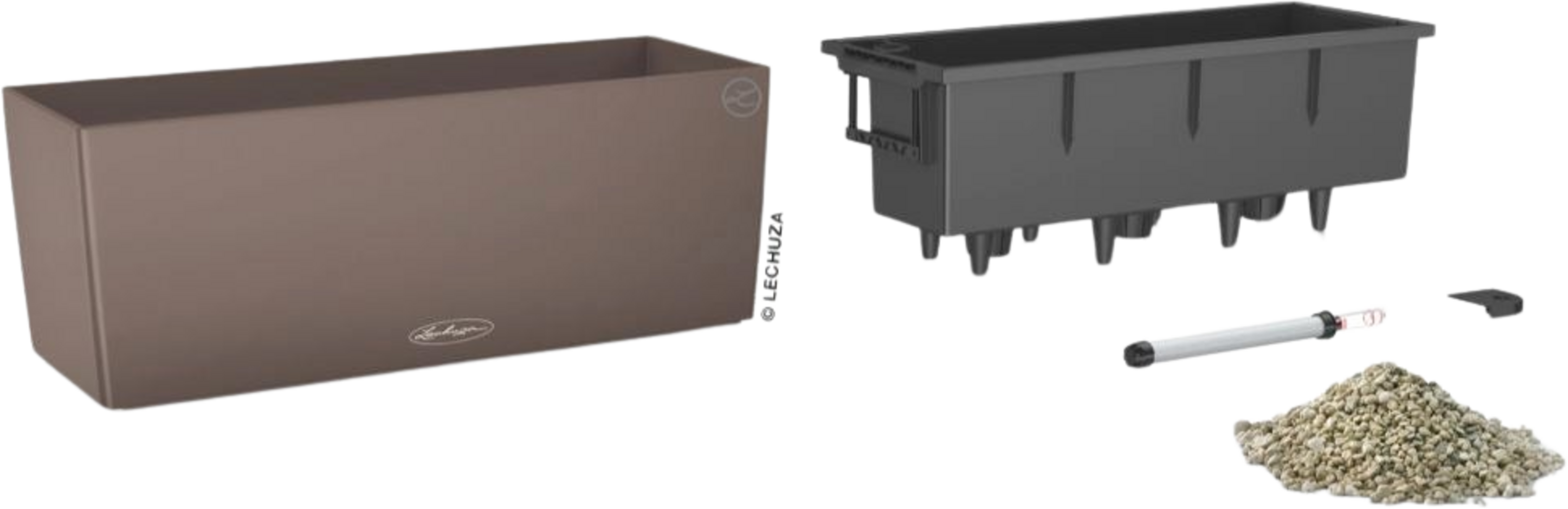 Contenuto: vaso, inserto per piante, indicatore del livello dell'acqua, granulato.