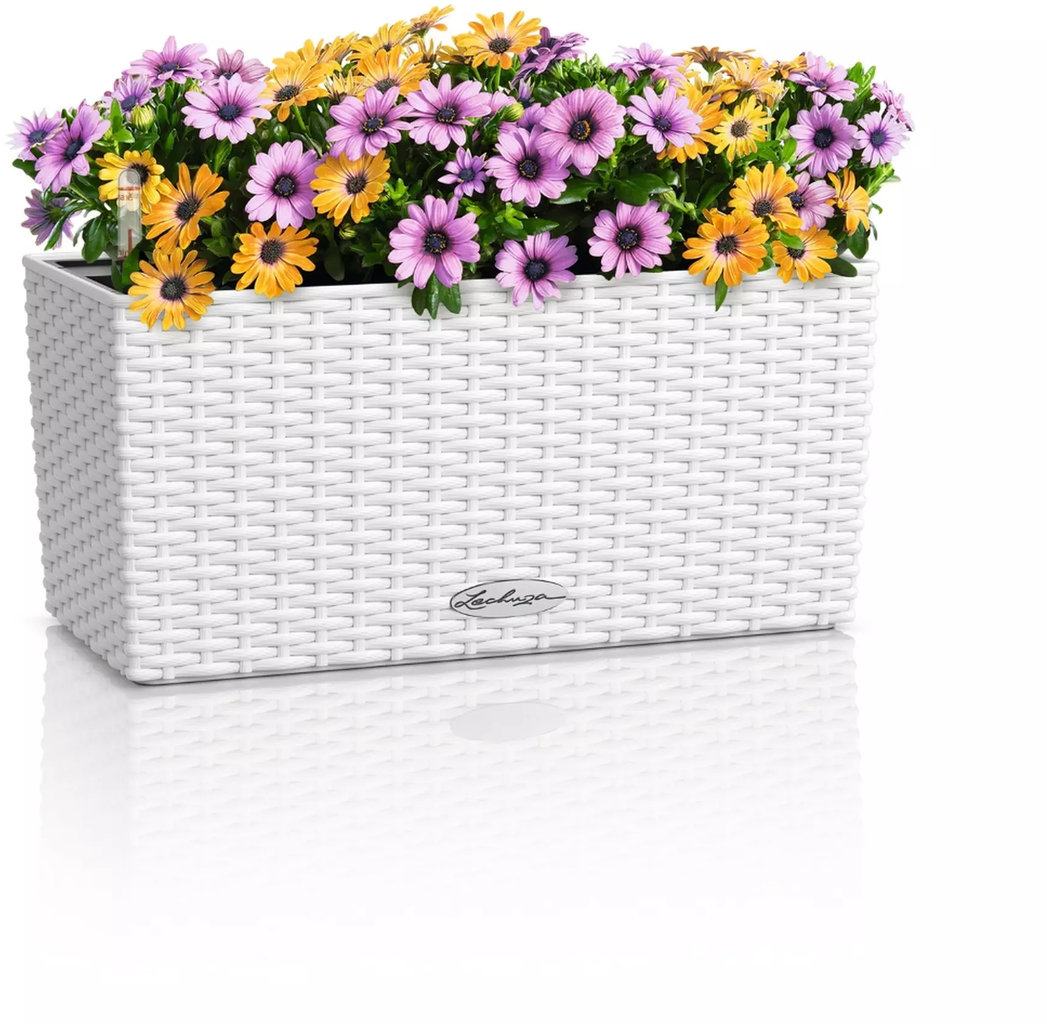 Questo vaso Lechuza in polipropilene resistente ai raggi UV colpisce per praticità ed eleganza. Può essere anche fissato alla ringhiera del balcone con gli accessori disponibili separatamente.