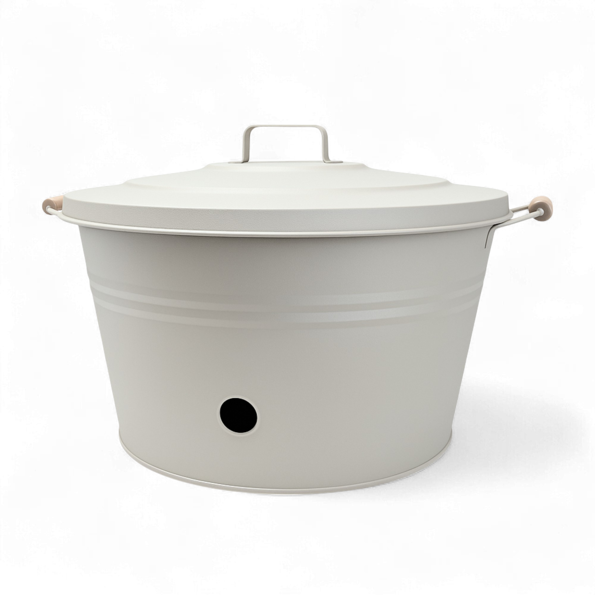 - Bidone e coperchio in metallo zincato a caldo e verniciato a polvere.