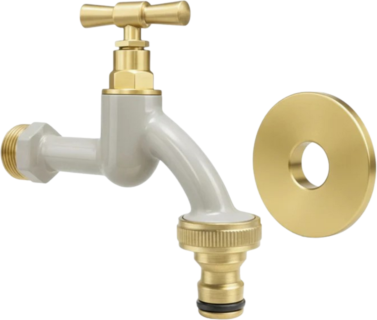 L'ottone è completato da una verniciatura a polvere che dona al rubinetto un aspetto raffinato e una piacevole finitura setosa al tatto. Un elemento di stile perfetto per il giardino, la terrazza, la lavanderia o il garage. La rosetta inclusa garantisce una finitura a parete pulita ed elegante.