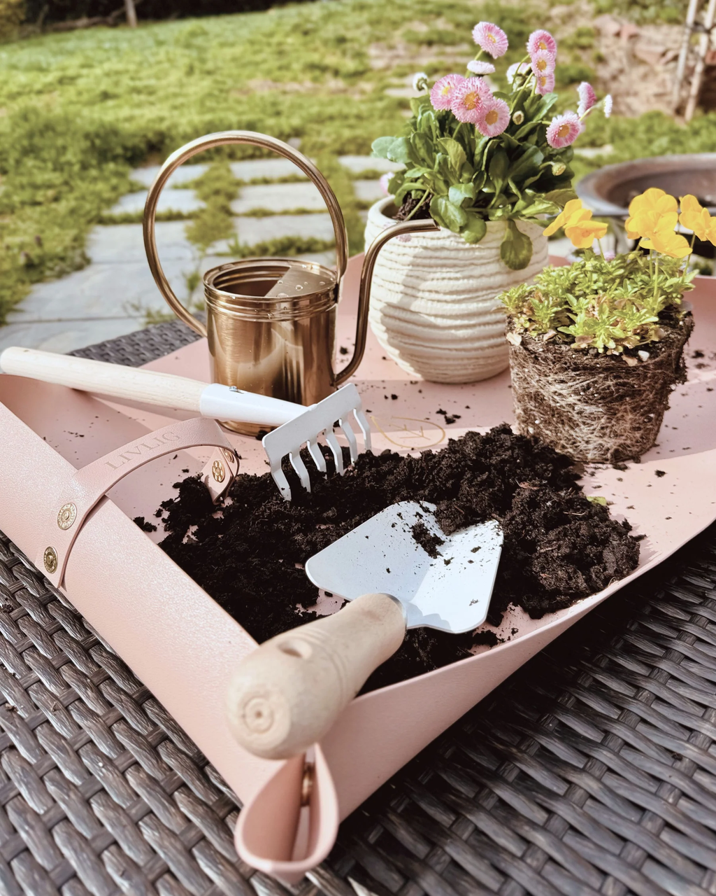 Questo elegante tappetino per giardinaggio è la base ideale per i tuoi lavori di semina o re-invaso, sia in casa che sul balcone o sulla terrazza. Il materiale in ecopelle di alta qualità ha bordi sigillati, è antiscivolo e idrorepellente. I magneti sui bordi possono essere utilizzati per creare un bordo rialzato in modo che l'area circostante rimanga libera dalla terra.