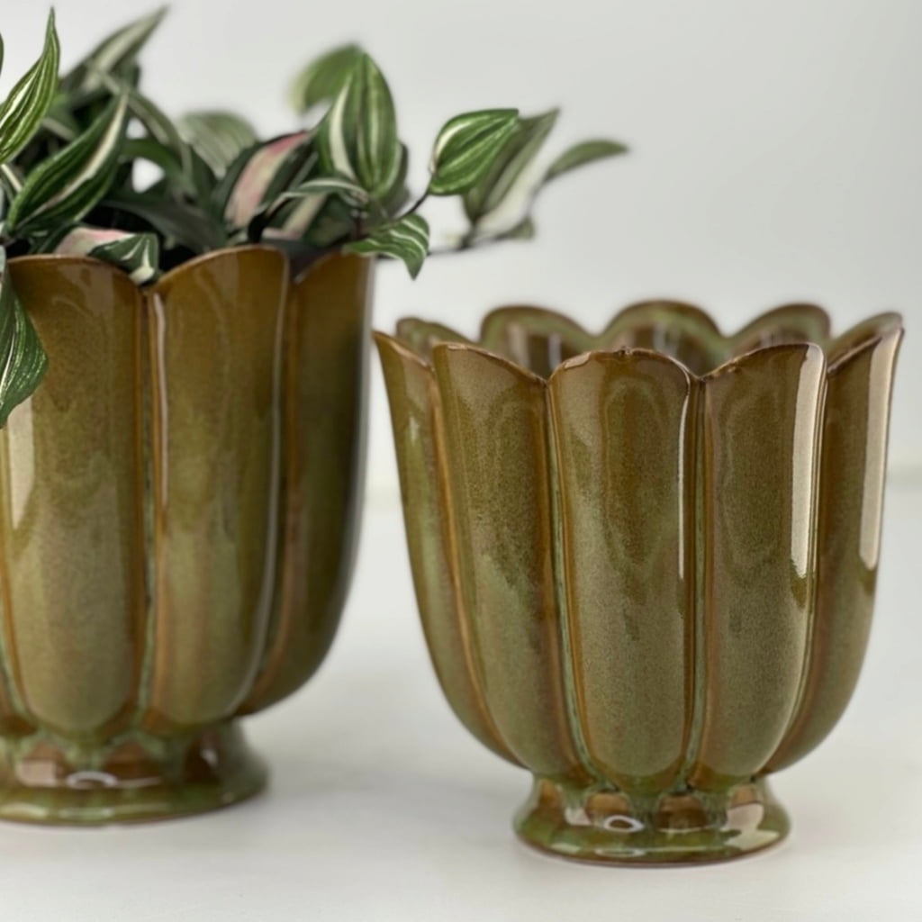 Il copri-vaso "Petulia" unisce un'eleganza moderna a una lavorazione artigianale unica. Realizzato in gres di alta qualità e rifinito con una smaltatura reattiva, ogni vaso ha una sua sfumatura di colore unica: un pezzo davvero unico. La forma leggermente lucida e ondulata dona alle piante un tocco di stile e si integra armoniosamente in una varietà di stili d'interni.