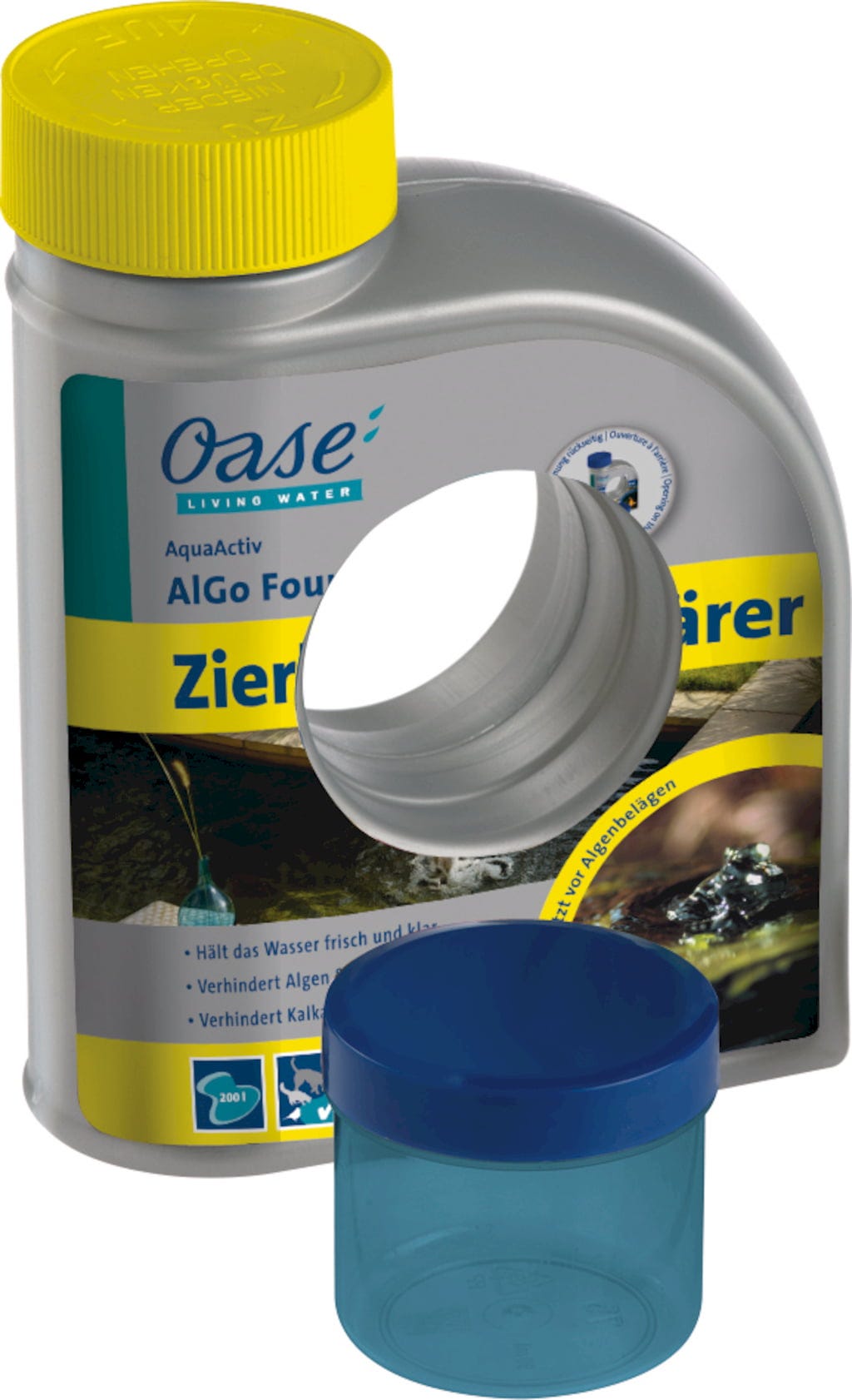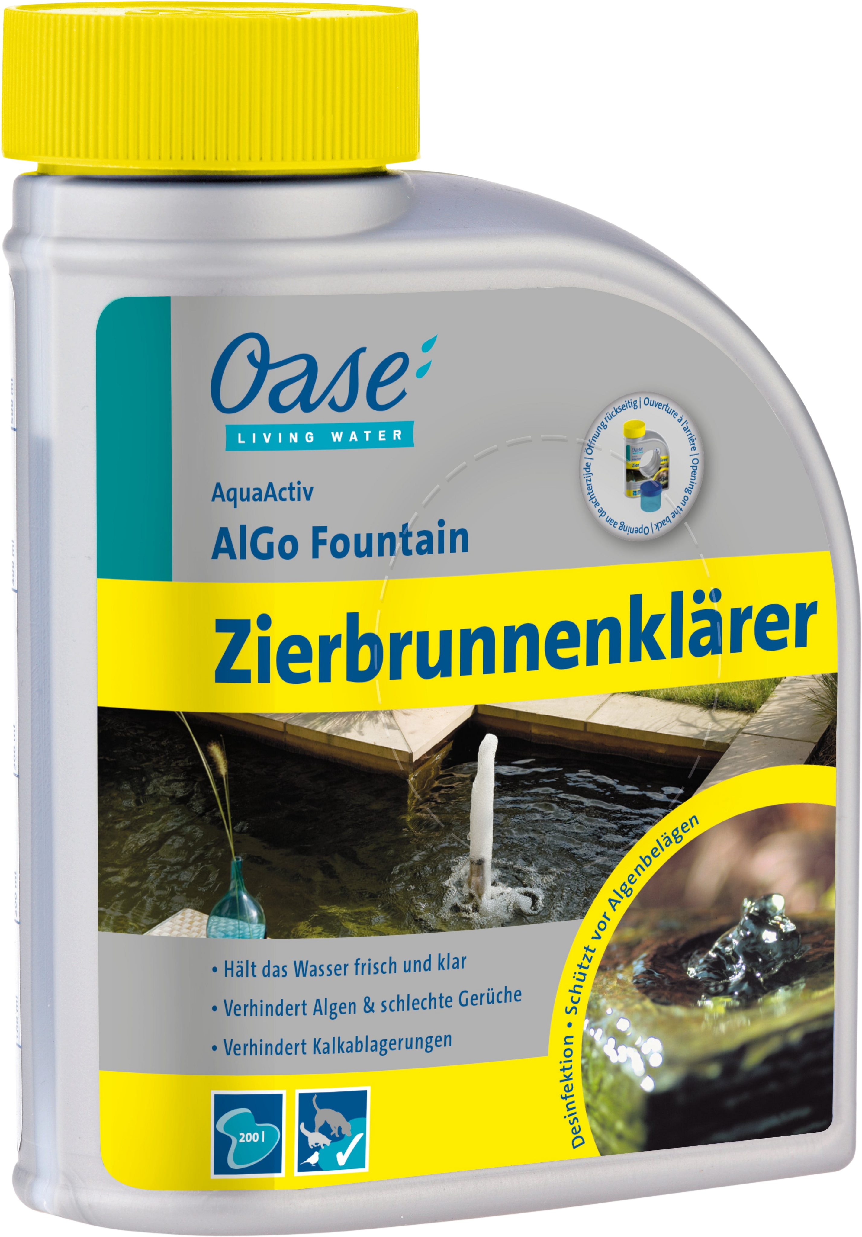 Adatto all'uso indoor e outdoor, AquaActiv AlGo Fountain di Oase è un ottimo aiuto contro alghe, odori sgradevoli, formazione di biofilm grasso, batteri o funghi. 5 litri di prodotto sono sufficienti per le vasche delle fontane, i giochi d'acqua e simili con un volume massimo di 0,2 m³.