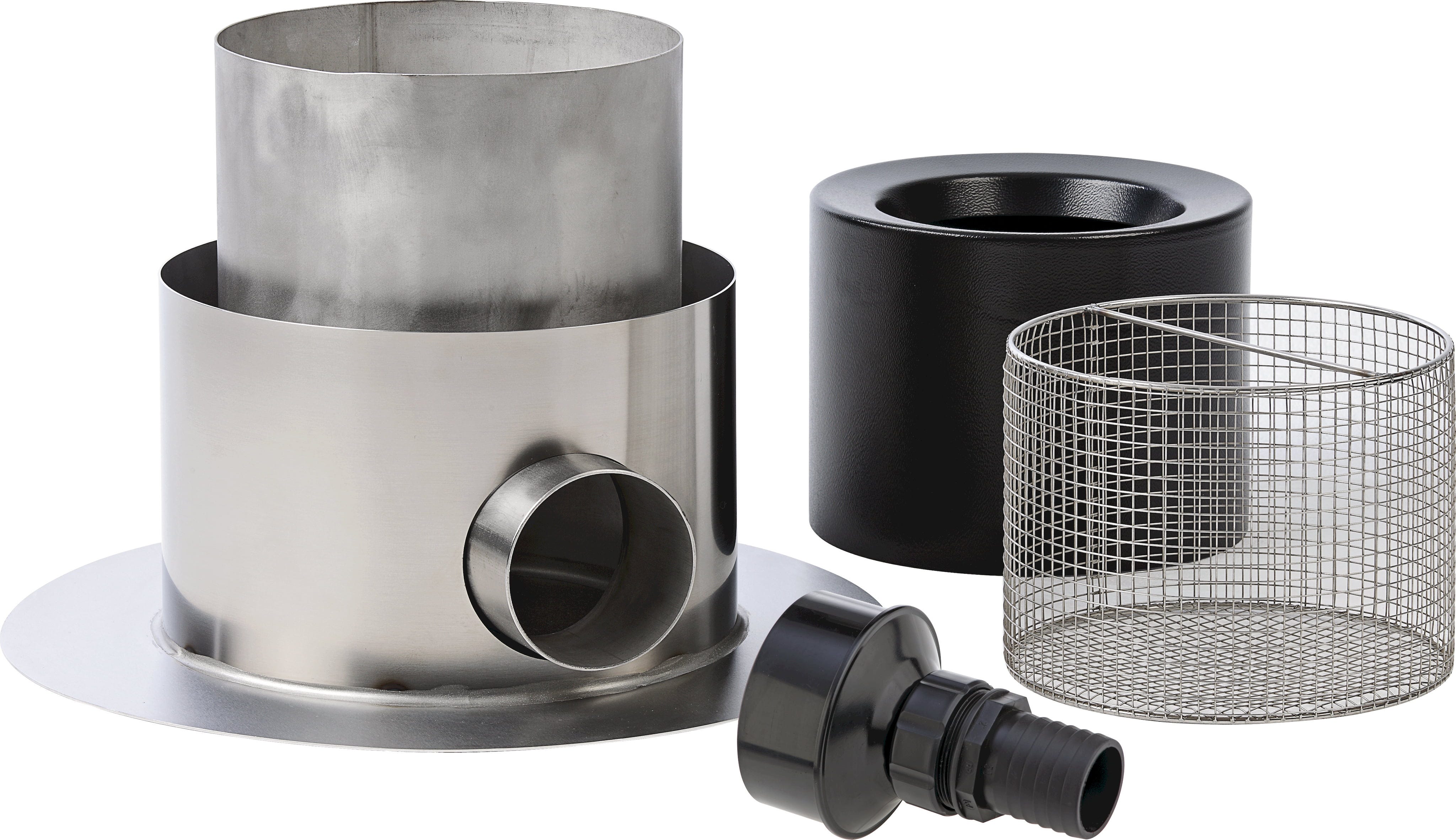 L’installazione è estremamente versatile: il dispositivo può essere integrato sia in sistemi tradizionali con pompa, sia in impianti professionali a gravità. Il robusto piede in acciaio inox garantisce stabilità sul fondo del laghetto ed è ideale per l’utilizzo in zone a bassa profondità. L’ampio cestello di raccolta in acciaio inox di alta qualità, con una maglia da 8 mm, trattiene in modo affidabile anche i detriti più grossolani e può essere rimosso e pulito facilmente in pochi passaggi.