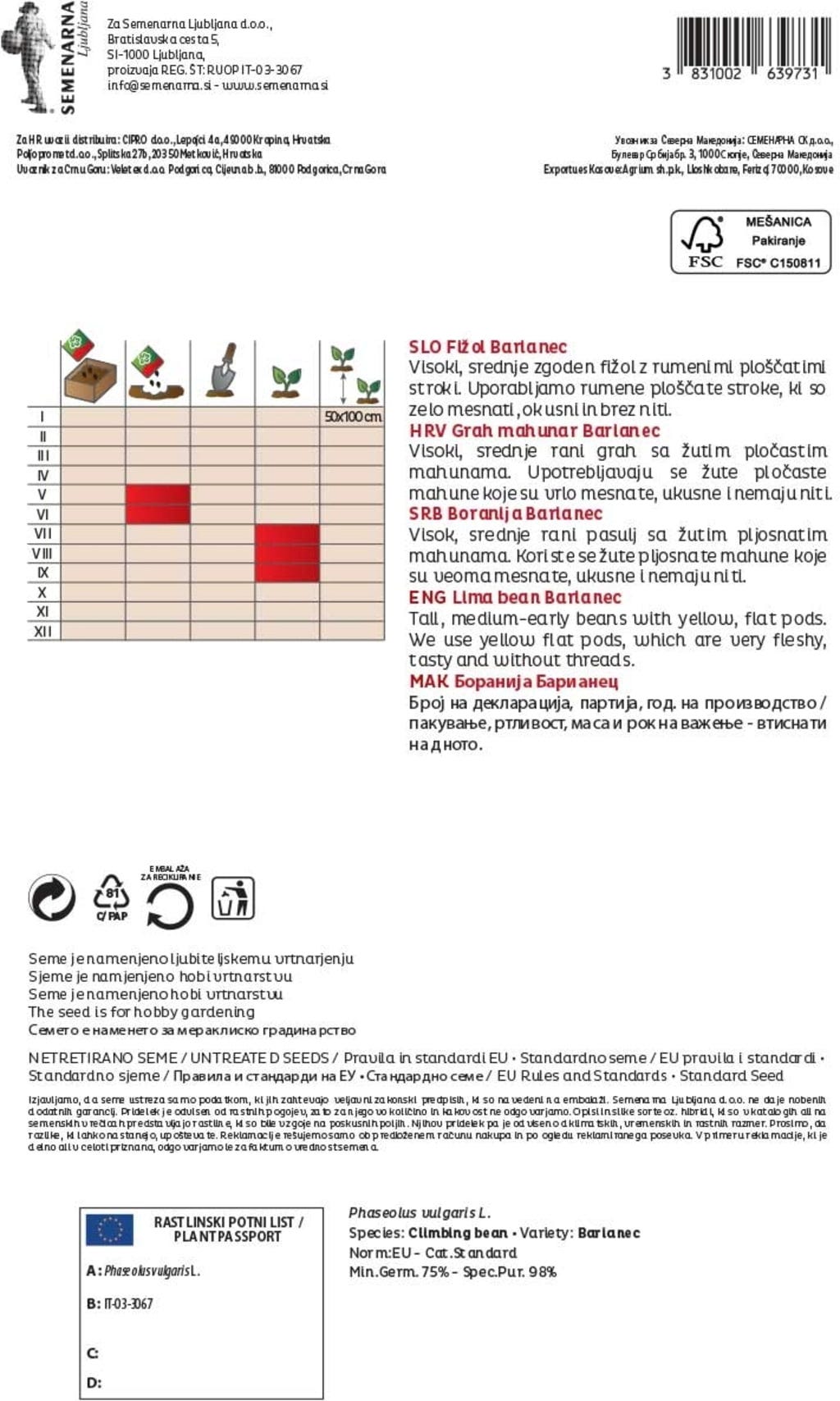 | Produttore: | Semenarna Ljubljana d.o.o., Bratislavska Cesta 5, 1000, Ljubljana, Slovenia, info@semenarna.si, www.semenarna.si |