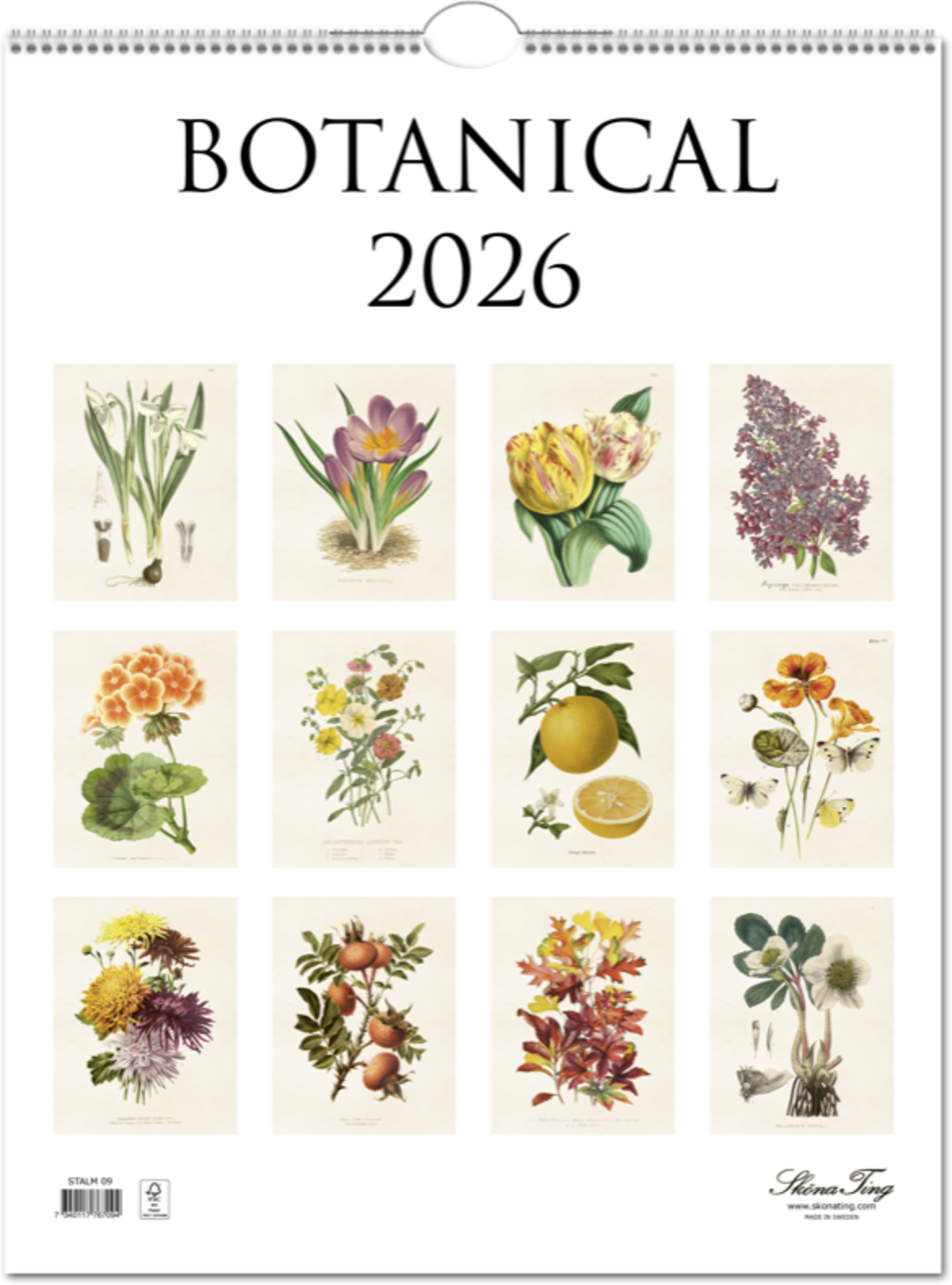 Questo favoloso calendario da parete progettato con cura contiene 12 illustrazioni storiche e dettagliate del mondo vegetale.