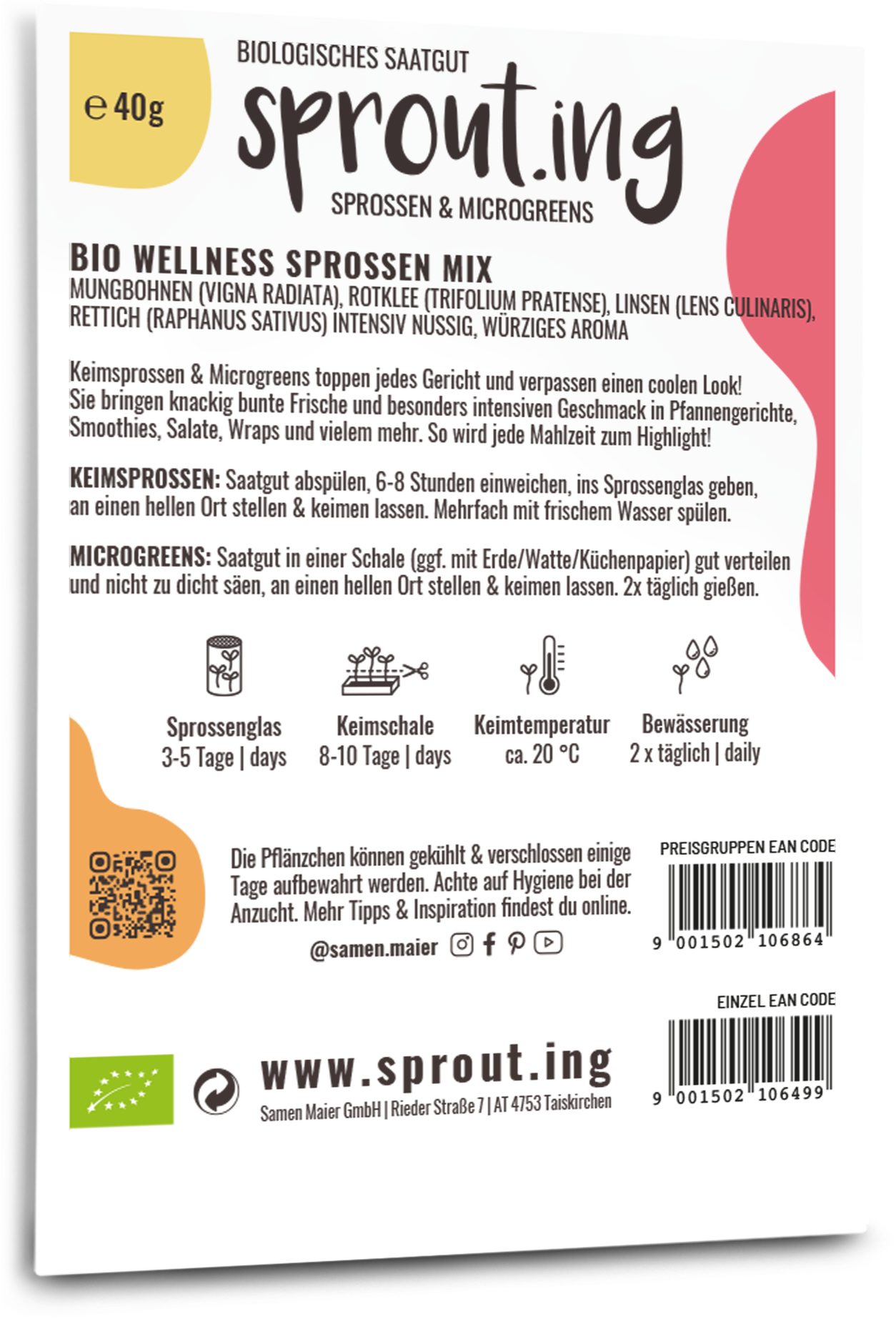 Questo mix di germogli è una miscela finemente bilanciata di semi delicati e ricchi di nutrienti che insieme creano una combinazione leggera ed equilibrata. Grazie al suo sapore delicato, è perfetto per frullati, piatti leggeri, ciotole per la colazione o come fonte quotidiana di vitamine. Coltivarli è facile sul davanzale: veloce, pulito, salvaspazio e non richiede giardinaggio.