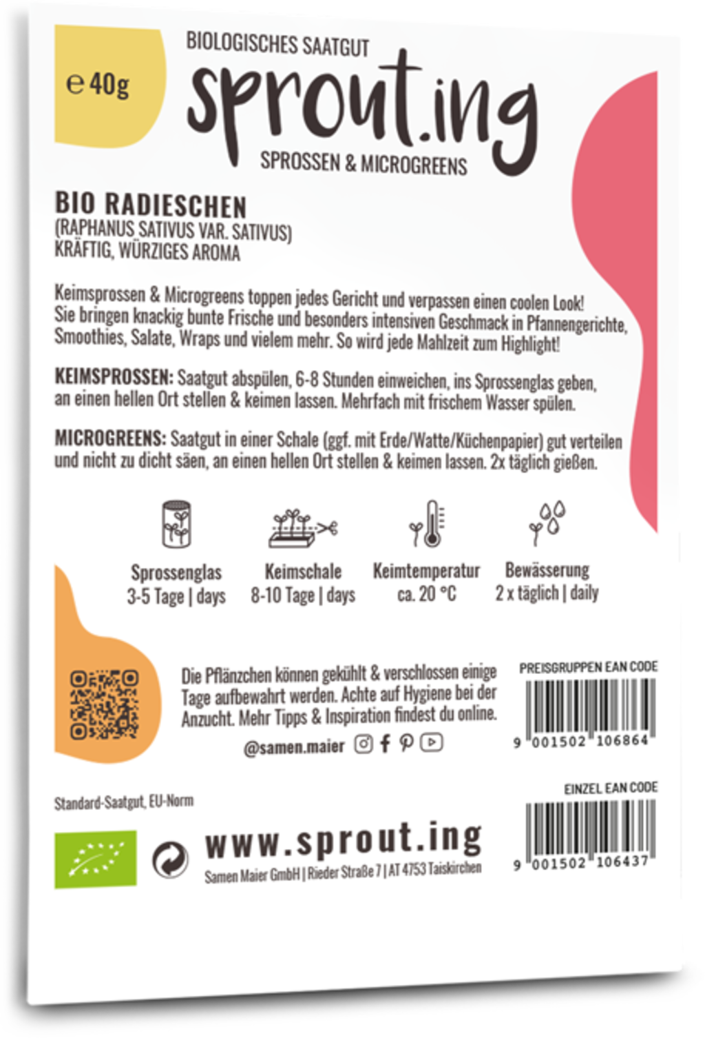 I germogli di ravanello, noti anche come microgreens, sono un'ottima aggiunta a qualsiasi piatto e hanno anche un aspetto fantastico. Aggiungono una freschezza croccante e colorata e un aroma robusto e speziato a piatti saltati in padella, frullati, insalate, wrap e molto altro.