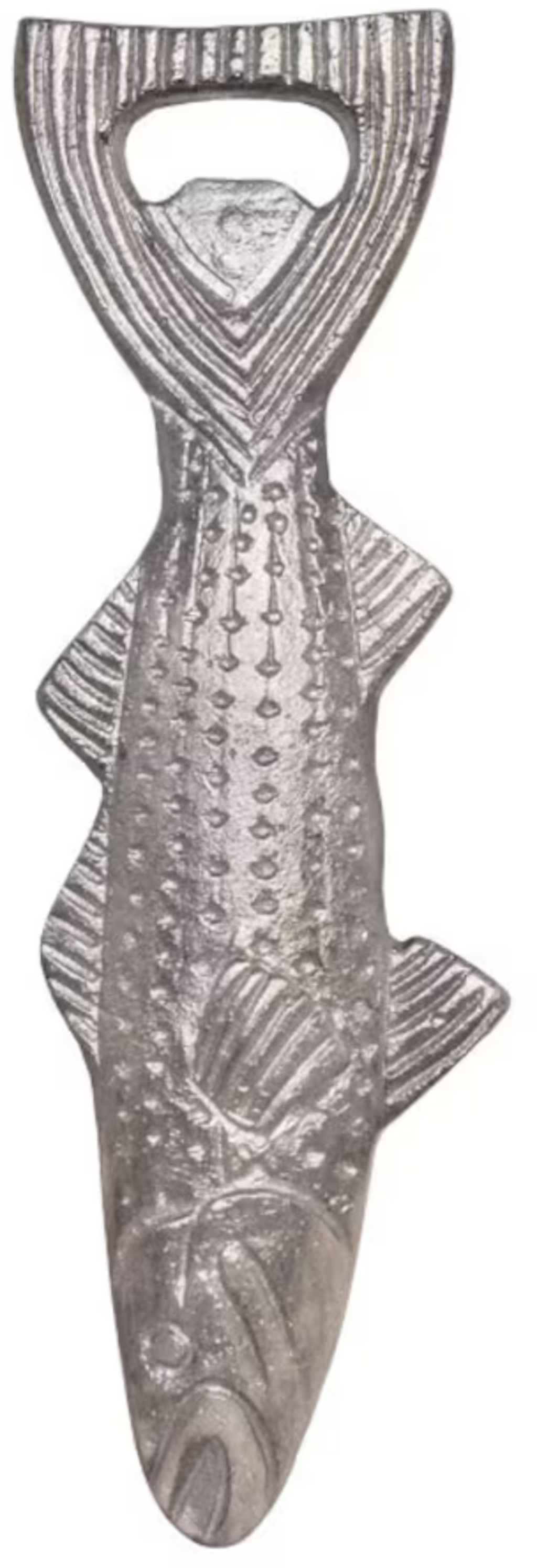Un apribottiglie dal fascino unico, pratico e decorativo allo stesso tempo. L'elegante design a forma di pesce con finitura anticata aggiunge un tocco speciale a qualsiasi bar o cucina. Durevole e maneggevole grazie alla robusta struttura in ferro.