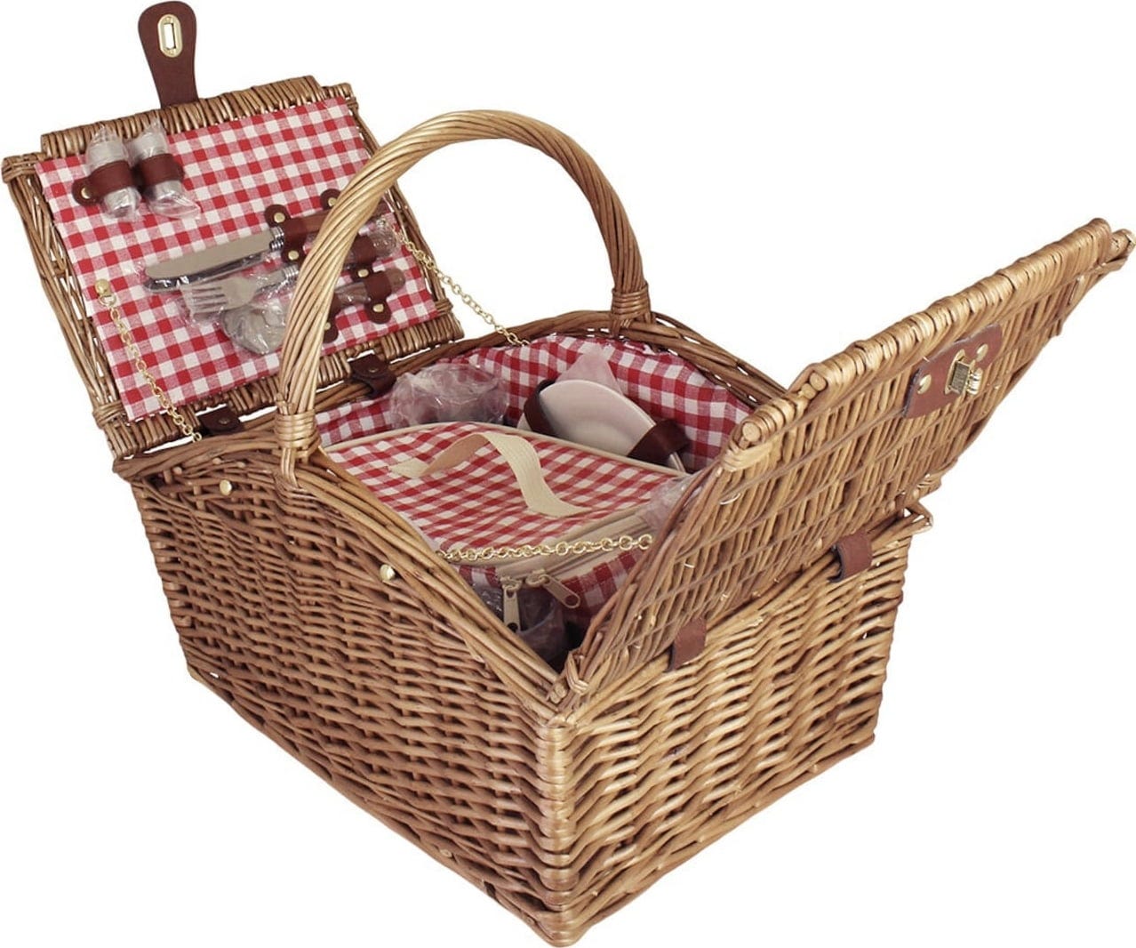 Contenuto: 1 borsa termica rimovibile, 1 set sale e pepe in acciaio inox, 1 cavatappi con manico in legno, 4 calici da vino in PS (infrangibili), 4 piatti in ceramica (robusti e lavabili in lavastoviglie), 4 set di posate con manici color legno