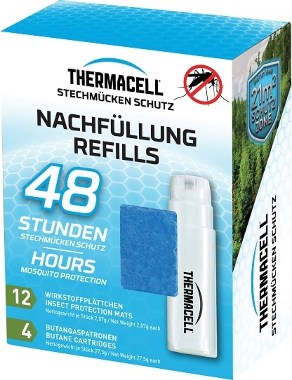 Questa confezione di ricarica da 48 ore ti permette di utilizzare il tuo dispositivo Thermacell più a lungo e con la massima praticità. Il set contiene 4 cartucce di gas e 12 piastrine di principio attivo, per una protezione affidabile contro le zanzare durante le tue attività all'aperto.